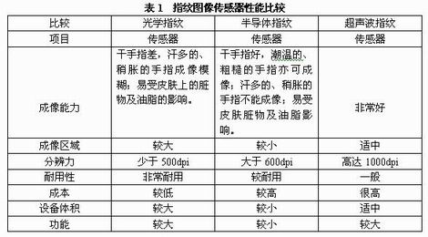 为克服物理方式的缺点,开发的光学传感器、半导体传感器、超声波传感器等对获取高质量指纹图 像提供了良好的技术保障,具有很好实用价值。同时,更先进的指纹图像传感器亦在研发,目的是获得足够的指纹细节,并使指纹图像达到较高分辨力,提高指纹识 别准确性、可靠性。本文主要介绍各种指纹图像传感器技术关键、性能特点,并简要介绍其应用情况及发展趋势。