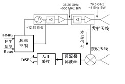 在图2所示传感器网络系统框图中,基于77GHzMMIC技术的雷达传感器是构成汽车雷达网络的前端关键硬件,后端的信息处理需要用数字信号处理器等高速运算单元来完成。传感器、数字信号处理单元以及数据融合决策系统之间采用以太网、高速串行连接的方式传送数据,以满足高数据率的传输要求。