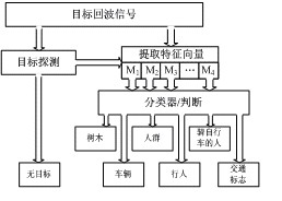 基于汽车雷达传感器的目标分类系统的系统结构和信号处理过程,它可以识别六种不同的雷达目标的类别,包括:步行者、骑自行车的人、车辆、人群、树木和交通标志等。