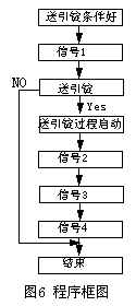 根据光检测电装置的工作过程,只要现场测定送引锭过程中各个光电信号发生的时间,结合送引锭过程与光电信号的关系,利用PLC应用程序中的相关数据,编制符合要求的PLC程序,将PLC程序输出信号输入至PLC的输入???,替代原光电信号的输入信号。其程序框图如图6所示。