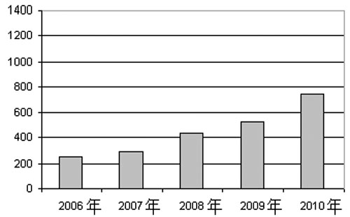 2006-2010年MEMS手机市场规模 单位:百万美元