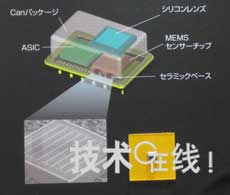 Grid-EYE将热电偶用作传感器元件。人感传感器等广泛使用的焦电型红外线传感器是信号没有变化就无法检测的微分型,而热电偶方式即使信号没有变化也可测量对象物体的绝对温度。传感器由采用MEMS技术的传感器元件、进行数据补偿等的ASIC以及硅透镜等构成。传感器元件以MEMS技术进行深蚀刻,形成了热电偶。