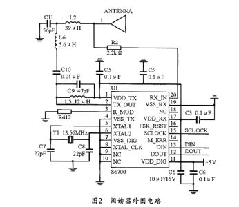 应答器TAG-IT完全兼容ISO/IEC15693协议??谟?4位的UID(卡号)和8位的AFI(应用识别号)、8位的DSFID(数据存储格式),其中UID是不可修改的。另外,卡内有2KB的EEPROM,分成64块,每块32Bit,每个块均可锁定,以保护数据免于修改。射频系统的阅读器电路设计图如图2所示。