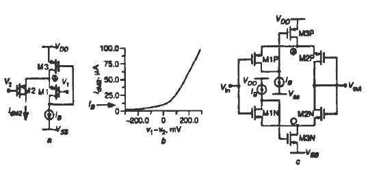 a.AB类差分输入单元 b.DC传输特性 c.低功耗缓冲器