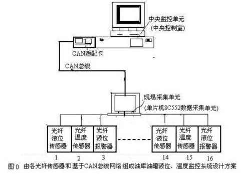 光纤传感器与基于CAN总线网络组成的油库油罐的液位、温度信号实时监测系统设计方案