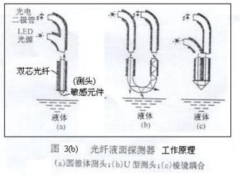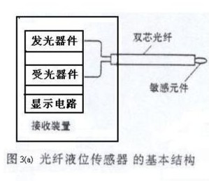 图3(a)所示为光纤液位传感器的基本结构。这种传感器的敏感元件和传输信号的光纤均由玻璃纤维构成,故有绝缘性能好和抗电磁噪声等优点。