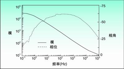 尽管奈奎斯曲线很常用,但是它不能给出频率信息,所以对于任何特定阻抗,都不可能知道采用的频率值是多少。因此,奈奎斯曲线通常要采用其它曲线来补充。另外一种常用的表示方法就是波特(Bode)图。在波特图中,x轴表示频率的对数,阻抗的幅度绝对值|Z|和相移都用y轴表示。因此波特图同时表示了阻抗与频率和相移与频率的关系。通常将奈奎斯曲线和波特图一起使用来分析传感器元件的传递函数。