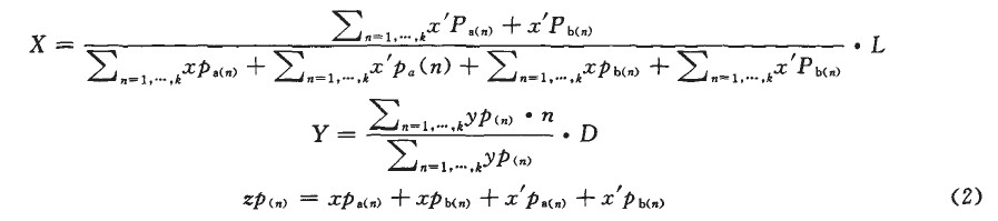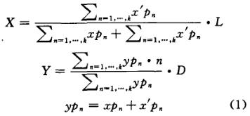 其中Cn代表第九组电极的Cp。n代表电极的组数,L是电极宽,D是一组电极的高。其X坐标的计算是通过左侧通道的感应值加和与右侧通道感应值加和的比例来计算的。y是通过同一行的左右两通道感应值的加和与上下行的感应值加和的比例来计算的。具体计算方法由式(1)确定: