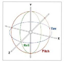 图1 全运动评估所需的6自由度运动测量:x、y、z轴线性运动和滚动、俯仰、偏航角速率转动