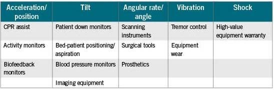 通过一个功耗极低的紧凑器件来精确检测和测量运动的能力,几乎对任何涉及到运动的应用都是有价值的,甚至对那些运动要求不是很关键的应用也是有价值的。表1按运动类型列出了一些基本医疗应用。需要解决更多挑战的更高级应用将在稍后讨论。