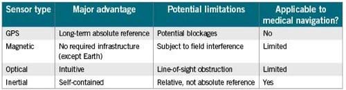 表2 广泛应用的导航传感器及其对医疗导航的适用性