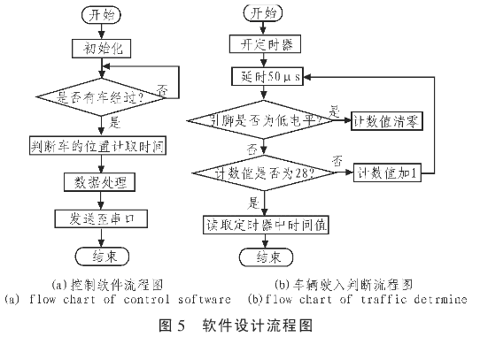当判断相应的接收管被遮挡时,相应的红外线对管序号累加。程序流程如图5(b)所示。