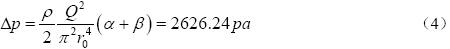 通过上式可以通过压差来计算流量,为了平衡扩张和压缩作用以及尽量减少能量损失,当θ=7°,φ=0.13,ζ=0.02,且流量Q为 61.1L/min,即在该管径下流速为1m/s时,对异径管尺寸进行优化为:a=0.4r0,b=0.8r0,a=2.9264,b=3.1109,α+β=6.0373,α/β=0.9407