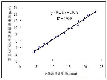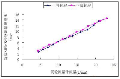 新型MEMS传感器的标定是通过涡轮流量计来实现的。采用串联在系统中的CLG15耐高压涡轮流量计(名义精度为0.5%)和SO64C-1型流量测试仪进行标定。