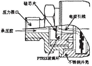 如图3的敏感芯体封接在金属螺纹底座上形成进压的腔道后成为一个可安装的压力测量前端,见图4。