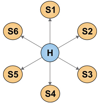 A) 星状网络:如图4所示,星状网络由一个点对多点无线连接组成,其一台单主机以双向或者单向方式连接至几个节点。如果低功耗和低软件开销为关键参数,则这种拓扑结构非常值得关注。其存在的局限性是有效通信距离,因为每个节点都要在主机通信距离范围以内。有几种标准可以用于实现这种拓扑结构。蓝牙、IEEE 802.15.4或者专有系统为使用最为广泛的一些标准。注意,由于一些蓝牙协议的局限性,蓝牙平台并未获得广泛的接受。