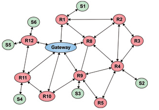 图3显示了家庭环境中应用的一个WSN。在这种网络中,我们可以观察到不同类型的传感器,例如,运动检测器、散热器、温度监控,等等。