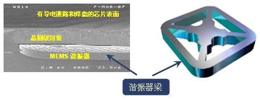 图1:MEMS谐振器四边的梁前后振动产生时钟频率