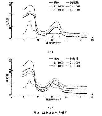 仪器与试剂:MPA近红外光谱仪,汽油,煤油样品配置:在秦皇岛海域采取一定量的海水,分别移取100、200、300、500 的汽油、煤油到100 mL的海水中,充分摇匀、静置使得样品能够模拟溢油在海水中的分散状况。