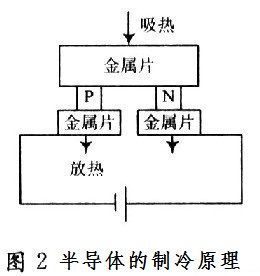 把一个N型和P型半导体的粒子用金属连接片焊接成一个电偶对。当直流电流从N极流向P极时,上端产生吸热现象,此端称冷端,下端产生放热现象,此端称热端,如果电流方向反过来,则冷热端相互转换。