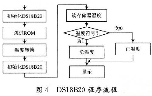 要进行温度控制,首先要测量所控制目标的温度值,在本系统中,具体使用数字温度传感器DSl8B20与DSP结合,并利用CCS编写程序,本系统开发平台为CCS 2.2,前期安装及芯片设置在此省略,程序流程如图4所示。