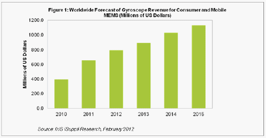 - 2011年陀螺仪成为消费与移动MEMS领域中的创收大户