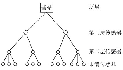 图1为传感器节点在网络中的组织结构。该方法需要一个异类网络:第二层和第三层传感器节点,在传输范围和电池寿命方面要比末端传感器更强。