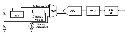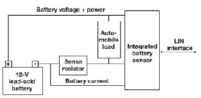 电池电压通过一个直接从电池正极分接出来的阻性衰减器来检测。为检测电流,将一个检测电阻(12V应用一般使用100mΩ)放在电池负极与地之间。在这种配置中,汽车的金属底盘一般为地,检测电阻安装在电池的电流回路中。在其它配置中,电池的负极是地。对于SoH 计算,还必须检测电池的温度?! ?br />
