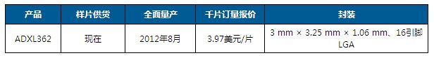 全球领先的高性能信号处理解决方案供应商,最近推出一款业界功耗最低的MEMS加速度计ADXL362。ADXL362是一款3轴数字MEMS加速度计,在运动检测唤醒模式下功耗仅为300 nA,与最接近的竞争传感器相比,相同模式下的功耗低60%。在全速测量模式下,数据速率为100 Hz时,ADXL362的功耗为2 μA,比相同频率下工作的竞争MEMS加速度计低80%。极低的功耗使ADXL362可用于需要数月甚至数年电池寿命的应用,此类应用中更换电池可能不切实际或者对设备或操作人员有危险。