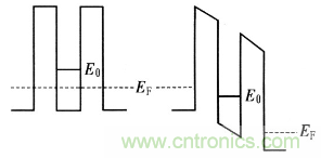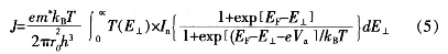 式中:e为电子电荷的大小,m*为GoAs电子的有效质量,kB为玻尔兹曼常数,T为绝对温度,EF为费米能级,E1为入射电子垂直(纵向)能量。