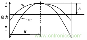 同样,当r=0.812R时,σT=0,且σr<0,如图3所示。在圆形硅膜片上,沿[110]晶向,在0.635R半径内外各扩散2个电阻,并适当安排扩散的位置,使得σn=一σro,则有(△R/R)i=一(△R/R)