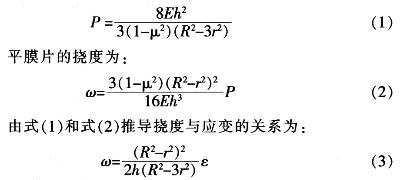 根据膜的结构与应力计算公式,推出被测压力与应变片测出的应变关系: