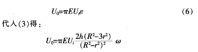 式中:μ为硅材料的泊松比,μ=O.35;R,r,h分别为硅膜片的有效半径,计算半径,厚度;E为硅材料的模量,E=8.7Gpa;P为作用于平膜片上的压力;ω为平膜片的挠度;