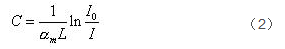 式中 为摩尔分子吸收系数;C 为待测气体浓度;L 为光和气体的作用长度(传感长度)。对上式进行变换得: