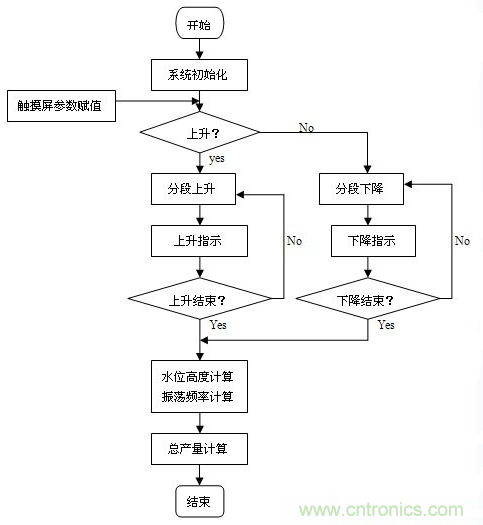 系统中采用触摸屏作为人机界面,显示操作画面,进行参数修改和指令输入。通过触摸屏可实现水位上升、下降高度等参数的设定和修改,实现实际水位高度变化、输出振荡频率和总产量等的实时显示等,并可对工作进程进行实时监控。
