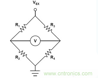 图1:受激励电压VEX和差分输出电压V驱动的惠斯顿桥