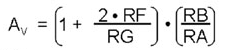 其中VREF代表ADC的参考电压,“Sensor FS”是传感器的满刻度输出值。假设电阻完美匹配,那么仪表放大器的增益等于: