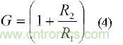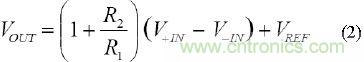 该仪表放大器的传递函数在形式上与经典三运放拓扑结构的 传递函数相同,其计算公式为