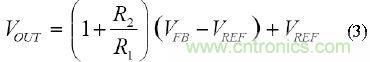 由于输入之间的电压等于反馈(FB)与参考(REF)端子之间的电压时,放大器的反馈要求可得到满足,因此,我们可将该公式重写为