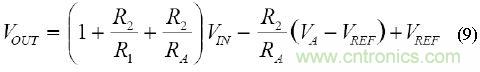 如果相对于原始等式中的VREF取VOUT和VA,则可得到相同的结果。 VA(MAX)~VREF也应替换等式(7)中的VA(MAX)。
