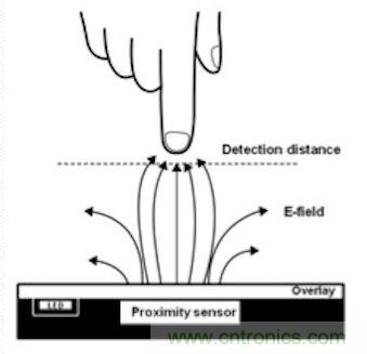 图1:此图说明了一个典型的电容式接近传感器系统[page]