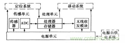 节点是无线传感器网络的基本功能单元,具体应用不同,节点的设计也不尽相同。传感器节点的基本组成??橛校捍械ピ⒋淼ピ?、通信单元以及电源部分,节点的结构见图2。此外,根据具体应用要求可以添加功能单元,如:定位系统、移动系统以及电源自供电系统等。