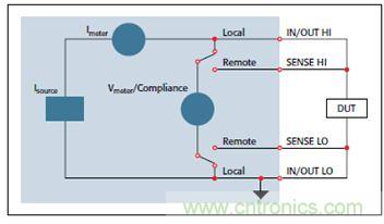 图2:SMU仪器作为恒流源和伏特计的配置,用于测量DUT的响应