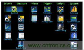 吉时利2450型交互式数字源表SMU仪器简化了非传统用户的学习曲线,使之从使用多层菜单结构和多功能按钮配置功能的繁琐工作中解脱出来。2450型仪器使用基于图标的平面菜单系统,就像在智能消费电子产品中使用的菜单系统一样简单,如平板电脑或智能手机上显示的应用图标排列。