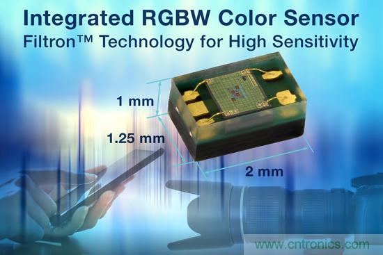 【导读】近日,Vishay宣布,推出具有I2C接口的小尺寸、集成式、高性能RGBW颜色传感器,采用可实现准确RGBW光谱感光度的Filtron技术。该传感器的Filtron技术实现优异的RGBW光谱感光度,采用2 mm x 1.25 mm x 1.0 mm的小尺寸封装。