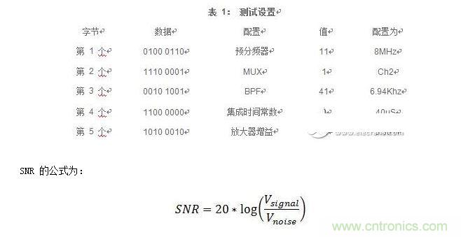 1.选择带通滤波器中心频率、集成时间常数、放大器增益和集成时间窗口等参数。必须根据系统级要求设置这些参数,也可以使用表 1 中示例测试设置中的值。