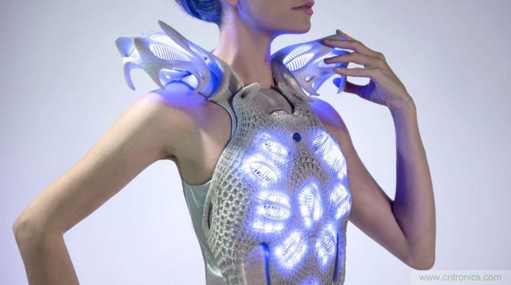 我们还可以通过肢体方面的一些表达来进行沟通,很显然,要想充分利用人类的肢体语言,智能服饰是一个非常不错的选择。来自荷兰的设计师Anouk Wipprecht就设计了一系列能够通过生物特征识别技术来表达自身情绪的智能服装。未来,我们可能会穿上一些带有LED灯的类似盔甲之类的服装,即使不说话也能表达自己的想法,不过我想应该会有人不喜欢这么奇怪的衣服。