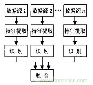 2.特征层融合:特征层融合属于中间层次,先从每种传感器提供的观测数据中提取的有代表性的特征,这些特征融合成单一的特征向量,然后运用模式识别的方法进行处理。这种方法的计算量及对通信带宽的要求相对降低,但由于部分数据的舍弃使其准确性有所下降。