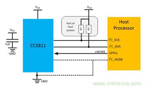 当然,正如前文所述,在物联网市场上依靠一颗器件“通吃”的想法是不现实的。室内空气监测市场的一个发展趋势,就是从工业和专用市场向消费级的市场渗透;而在消费电子市场,成本是一个需要优先考虑的因素。为此,ams推出了一颗低成本的CCS811来应对,让经典的设计“流行”起来。