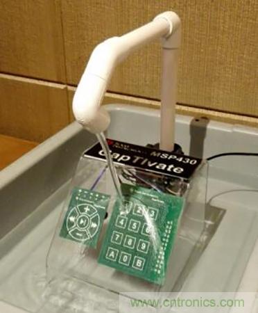 图1:采用MSP430FR2522 MCU的面板暴露在有水的环境仍能确保零误触发